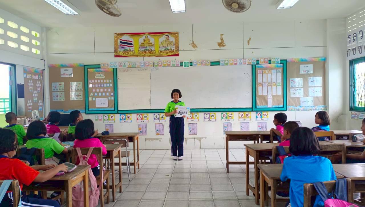 นักเรียนมีความกล้าแสดงในการอ่านคำ ครูจึงต่อยอดจากความกล้าแสดงออกนั้น ให้นักเรียนได้ฝึกความเป็นผู้นำในการอ่าน โดยสลับกันเป็นผู้นำ