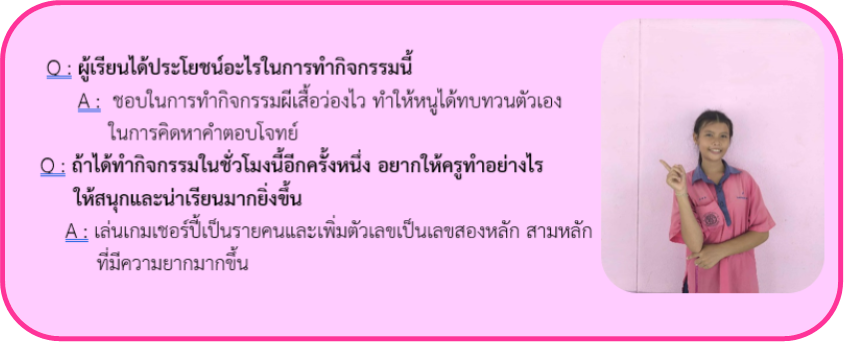 - ผู้เรียนสนุกและตื่นเต้นในการเล่นเกม เชอร์ปี้ มาก