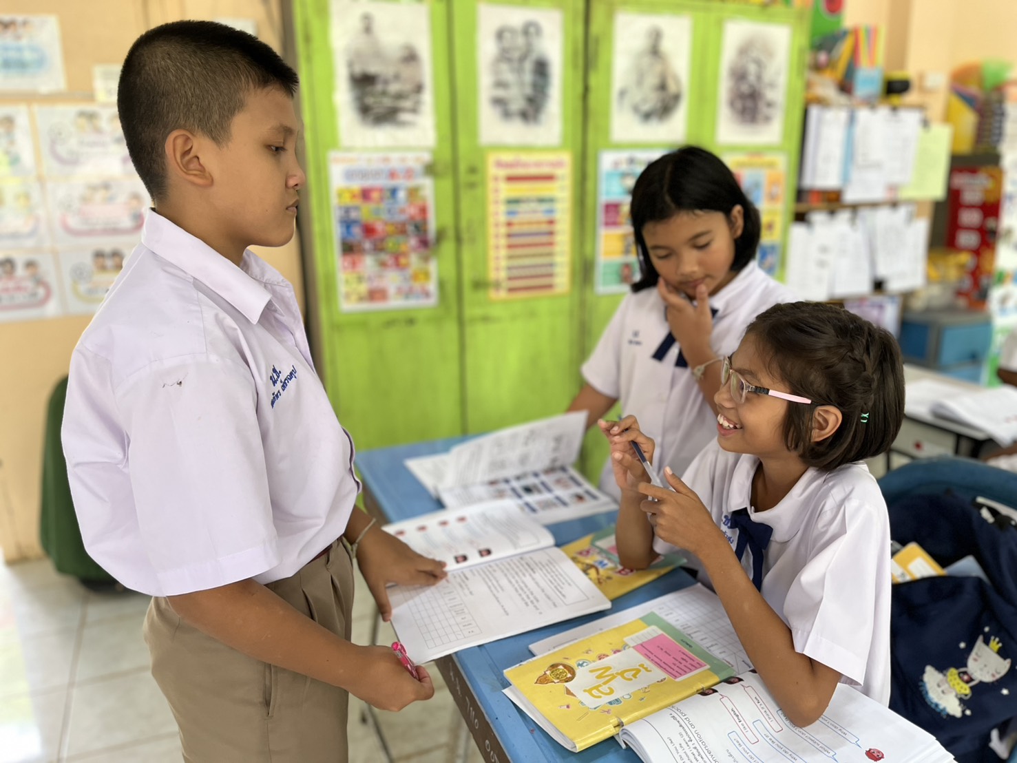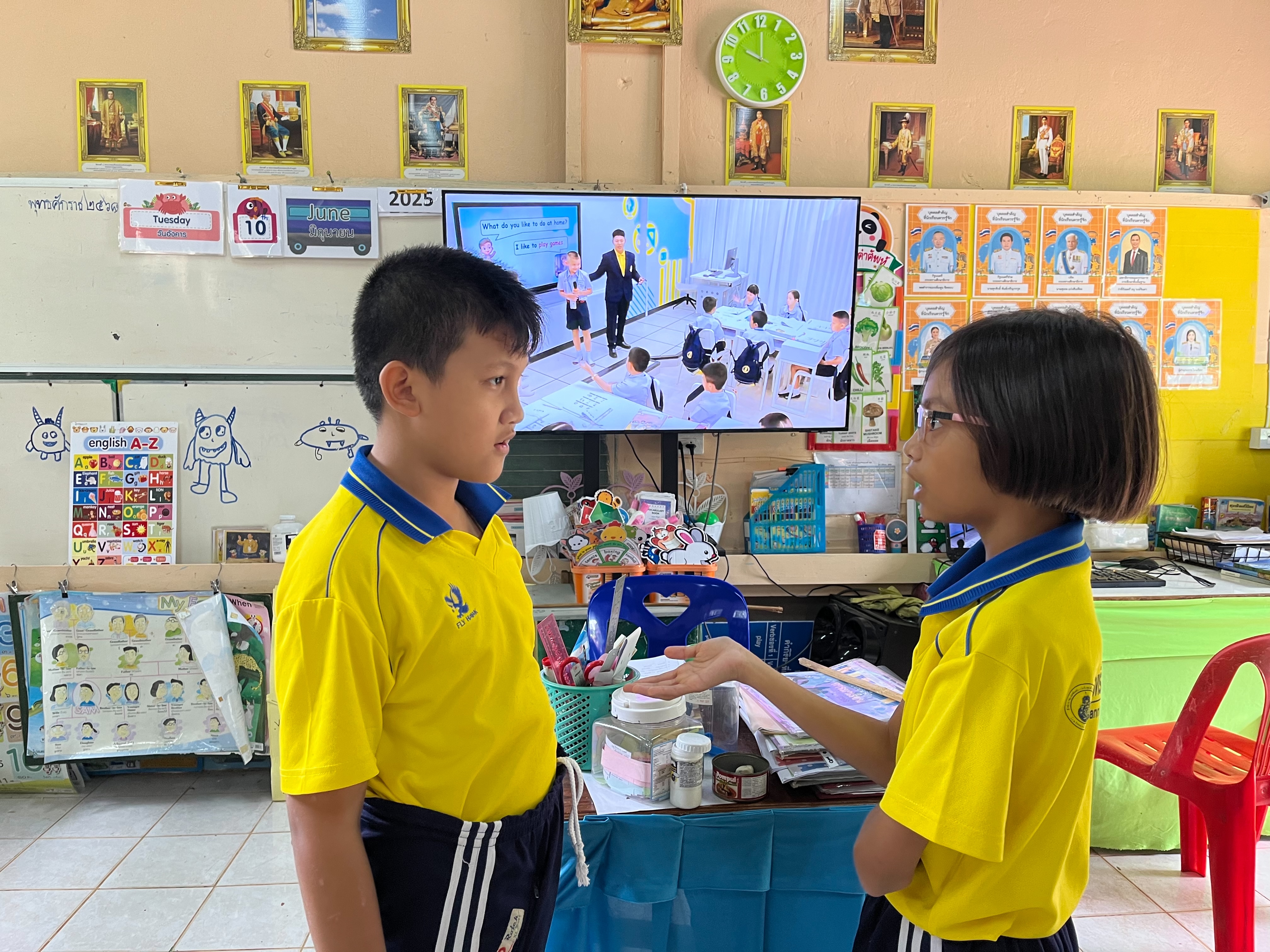 โดยจับคู่กับเพื่อนในห้อง แลกเปลี่ยนกันพูด