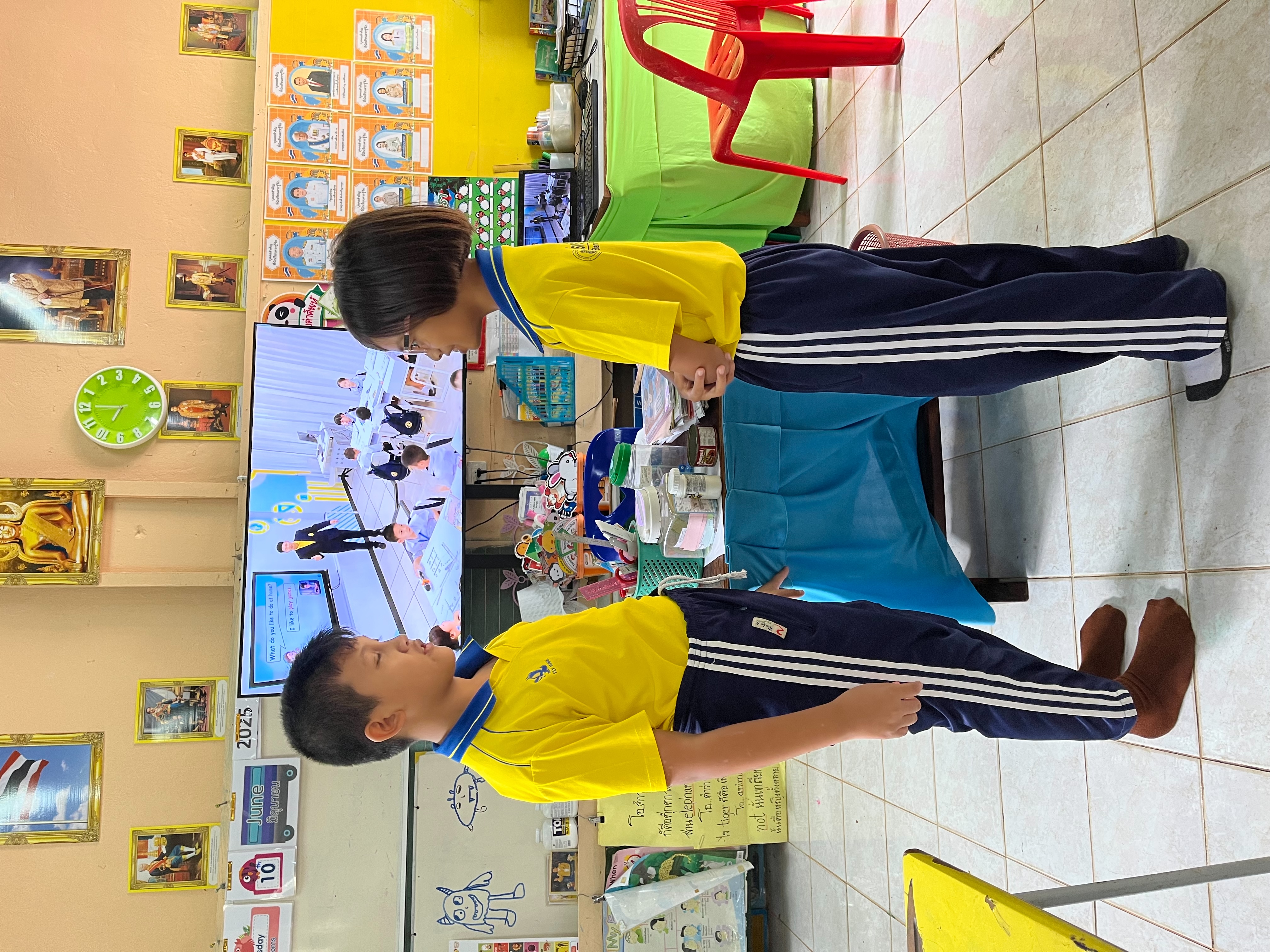 5. หลังจากนั้นอาสาสมัครแต่ละกลุ่มออกมานำเสนอหน้าห้องเรียนพร้อมแสดงท่าทางประกอบด้วย