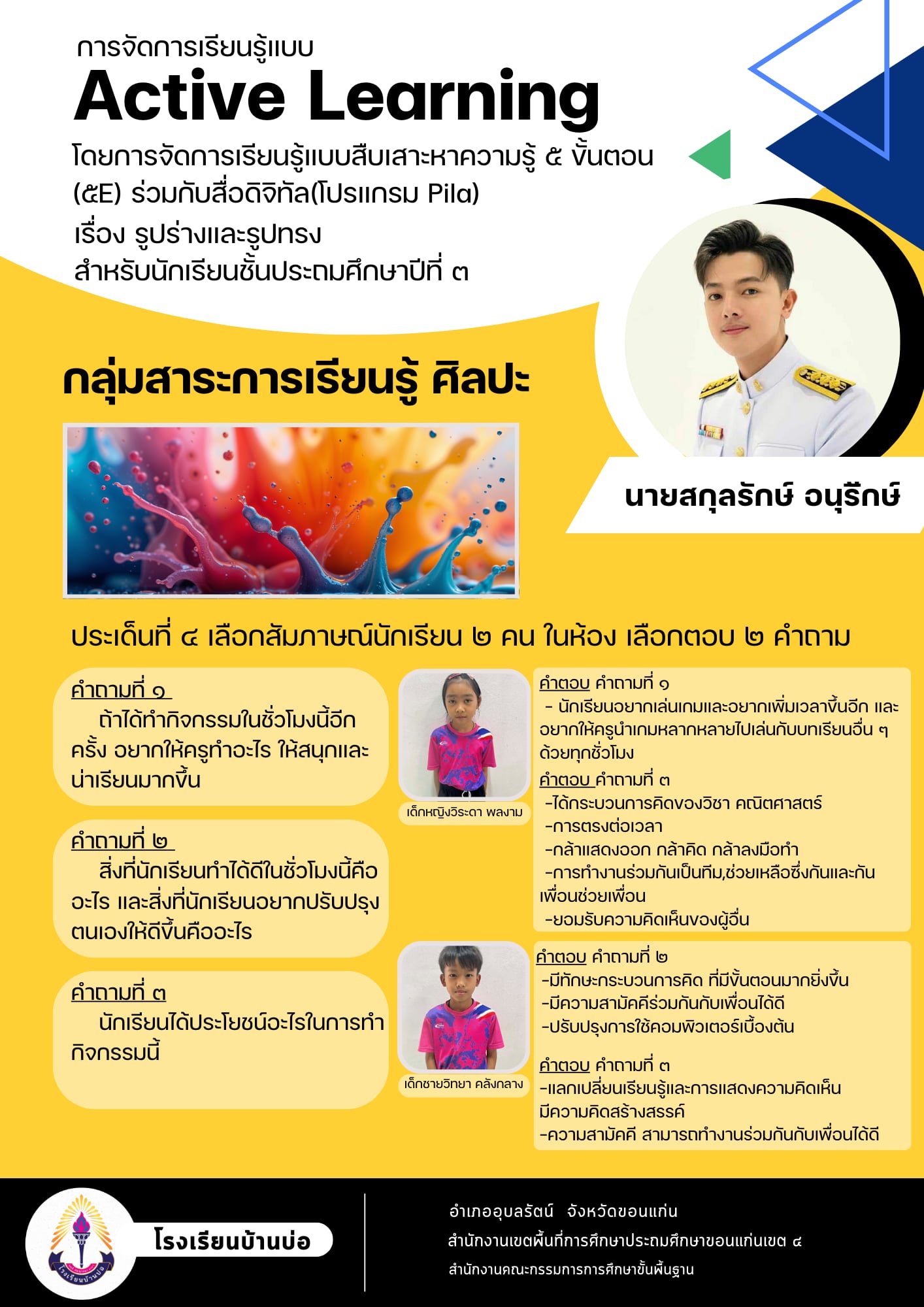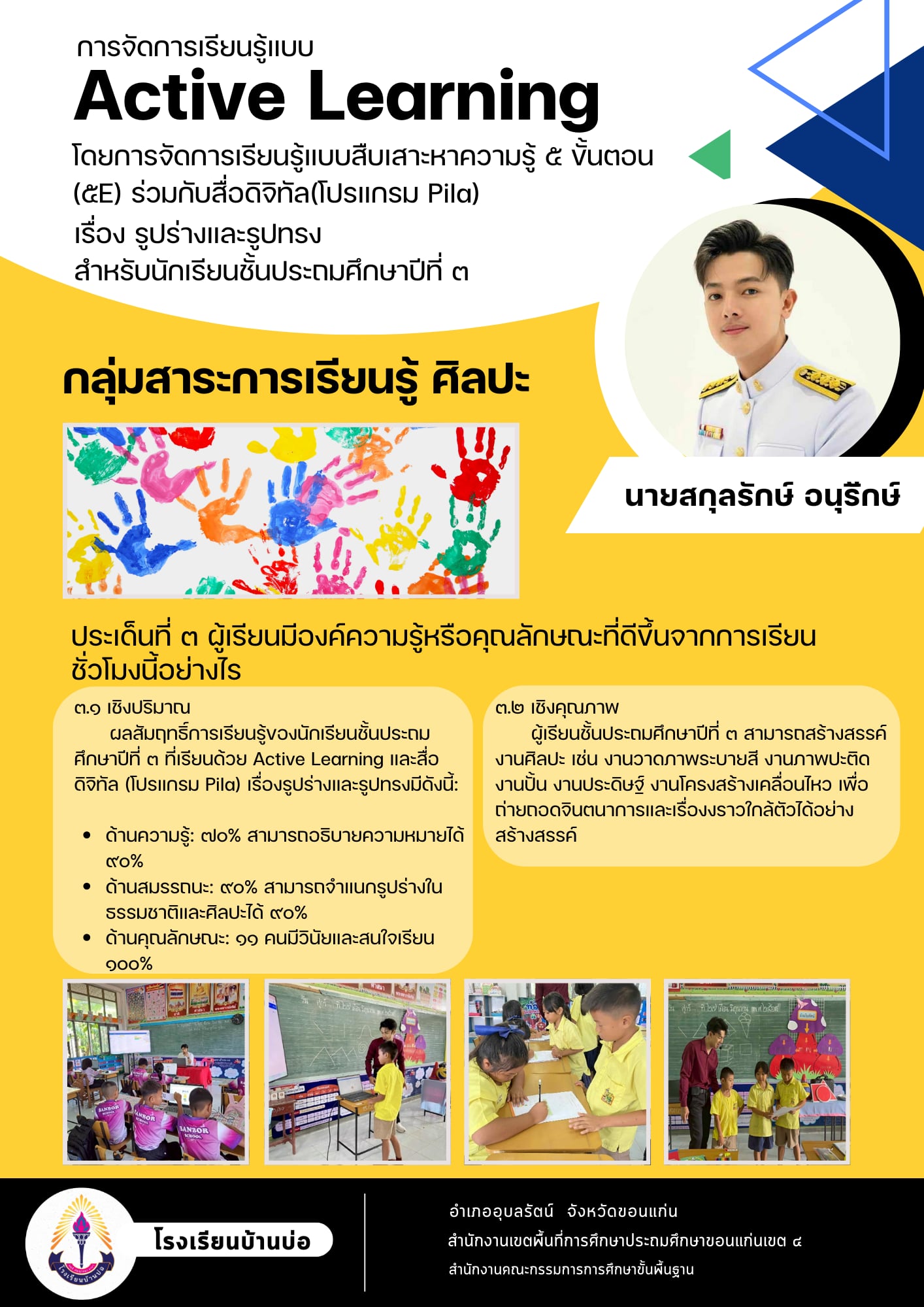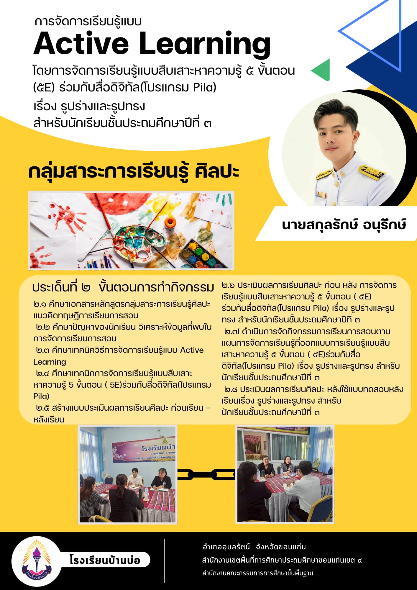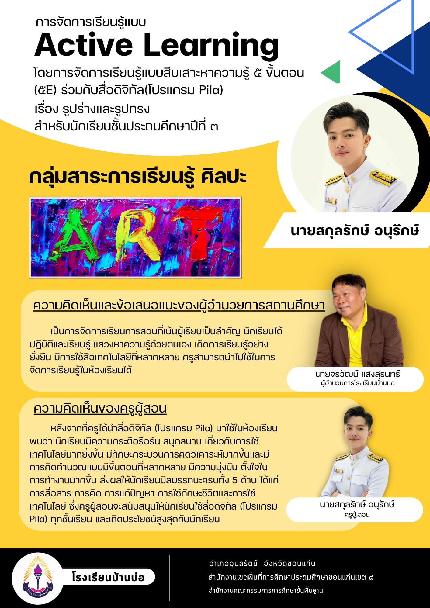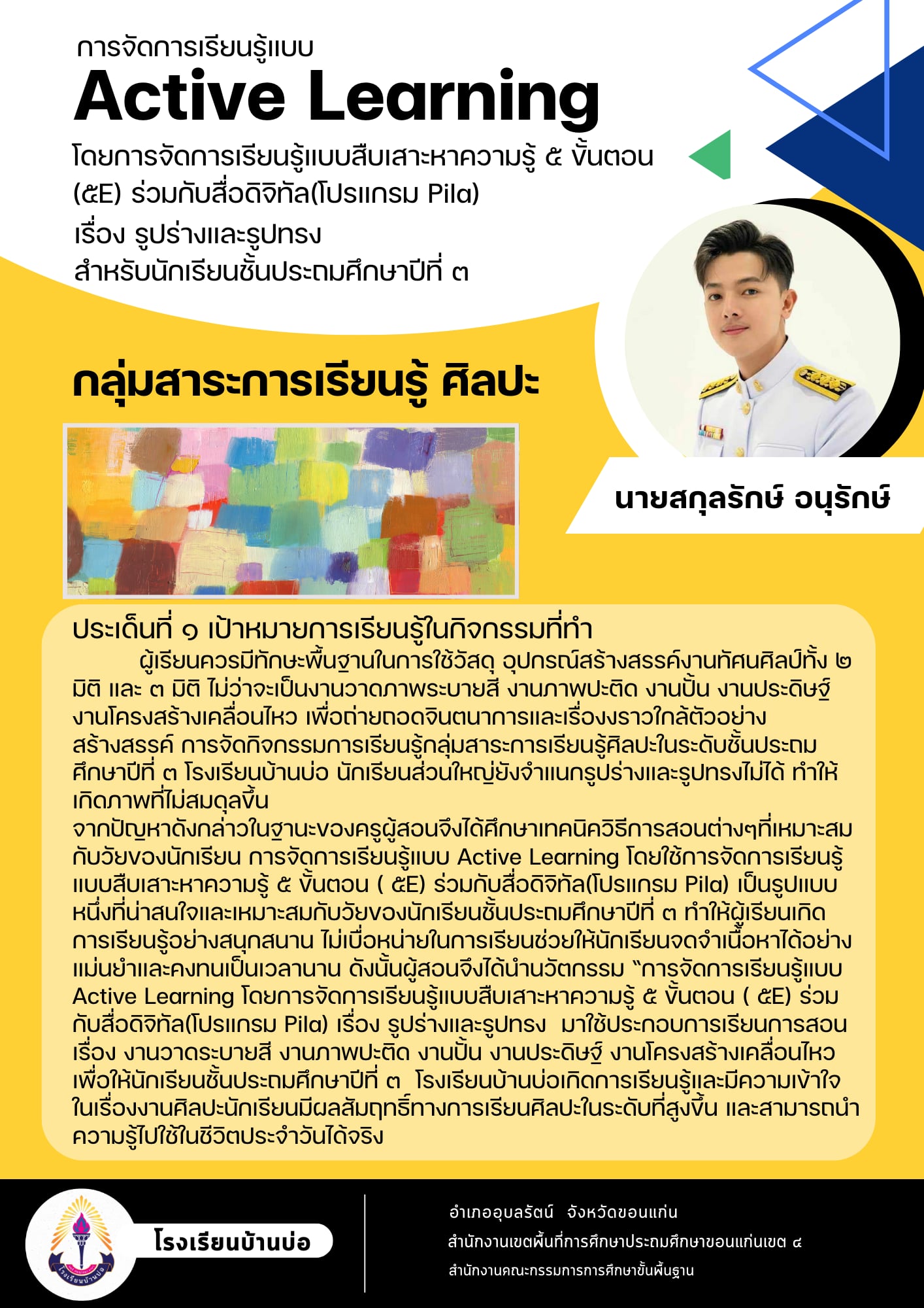 การจัดการเรียนรู้แบบ Active Learning โดยการจัดการเรียนรู้แบบสืบเสาะหาความรู้ ๕ ขั้นตอน (๕E) ร่วมกับสื่อดิจิทัล(โปรแกรม Pila)