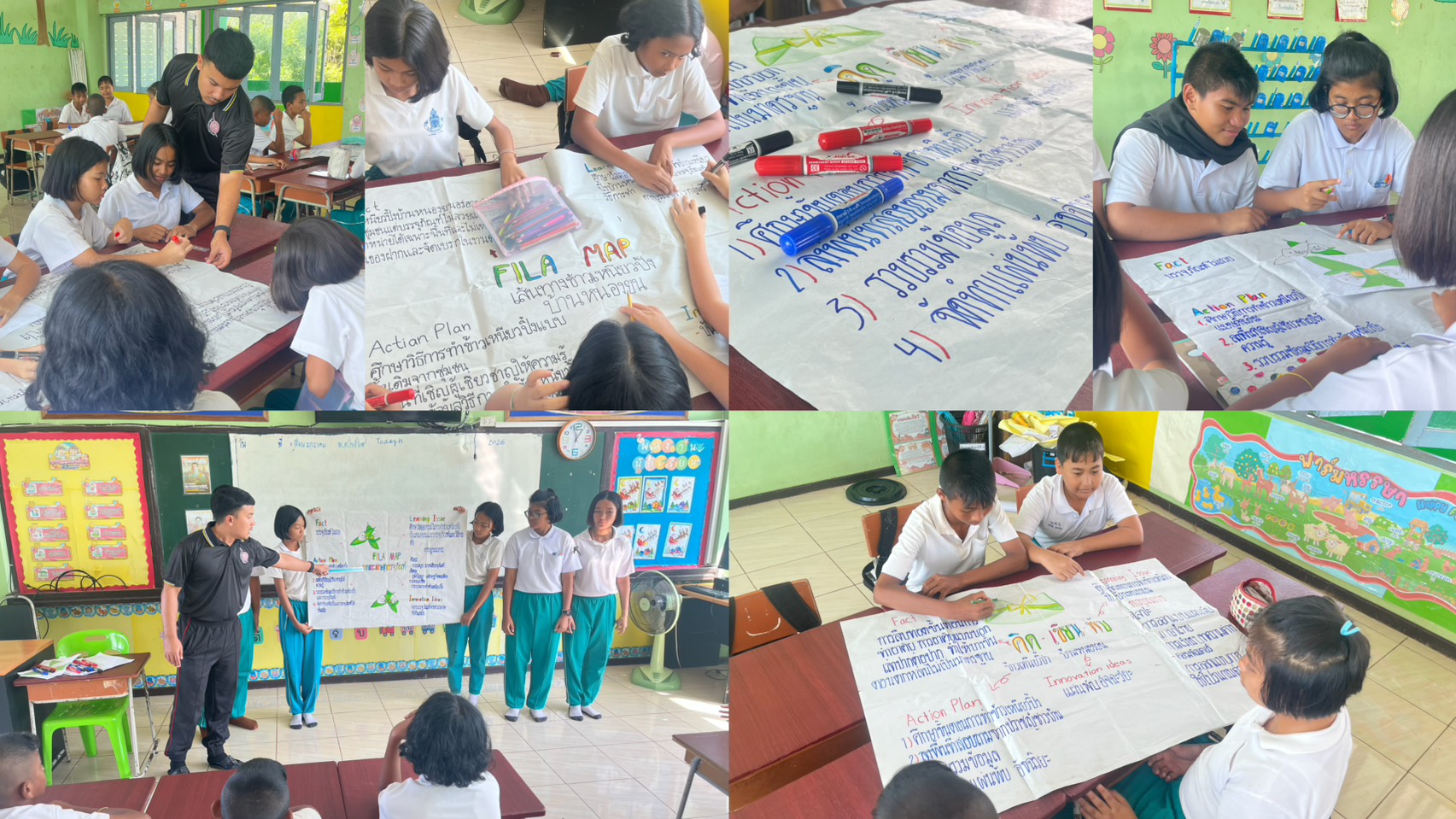 นักเรียนวิเคราะห์และช่วยกันวางแผนโดยใช้กระบวนการทำ FILA