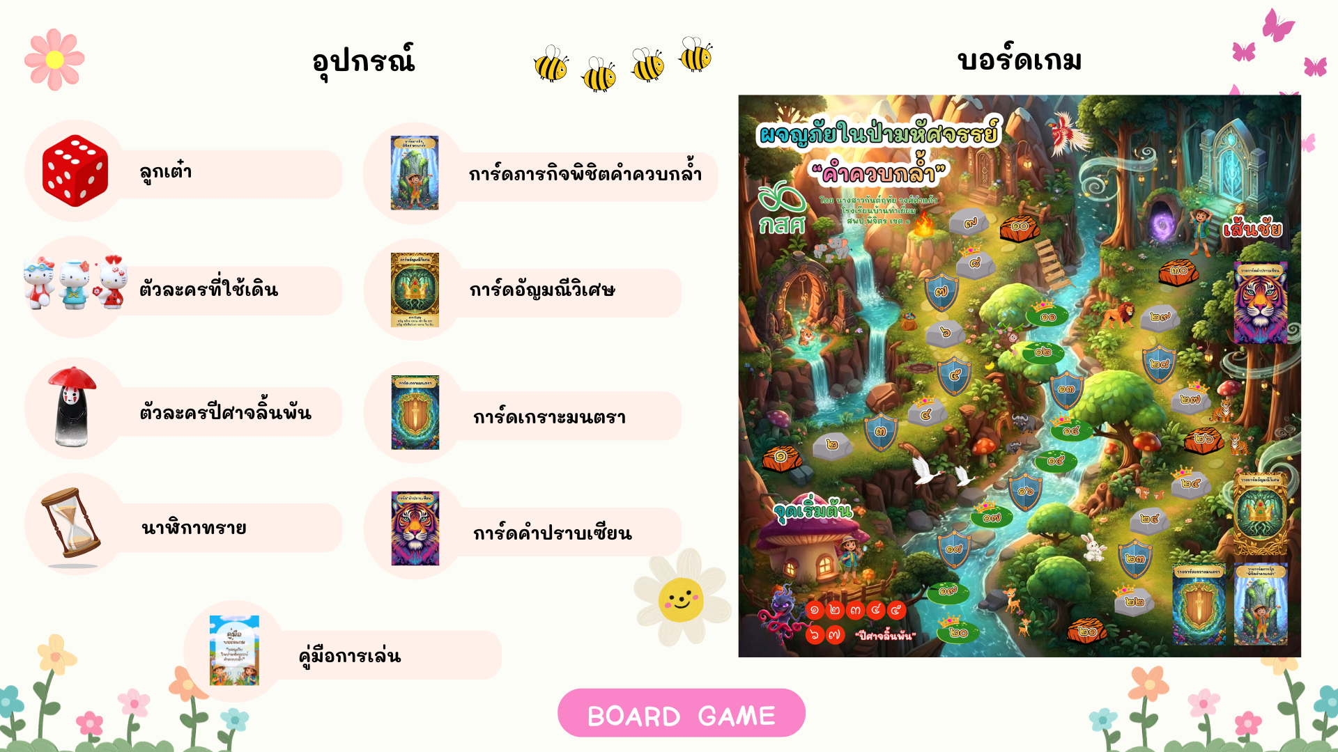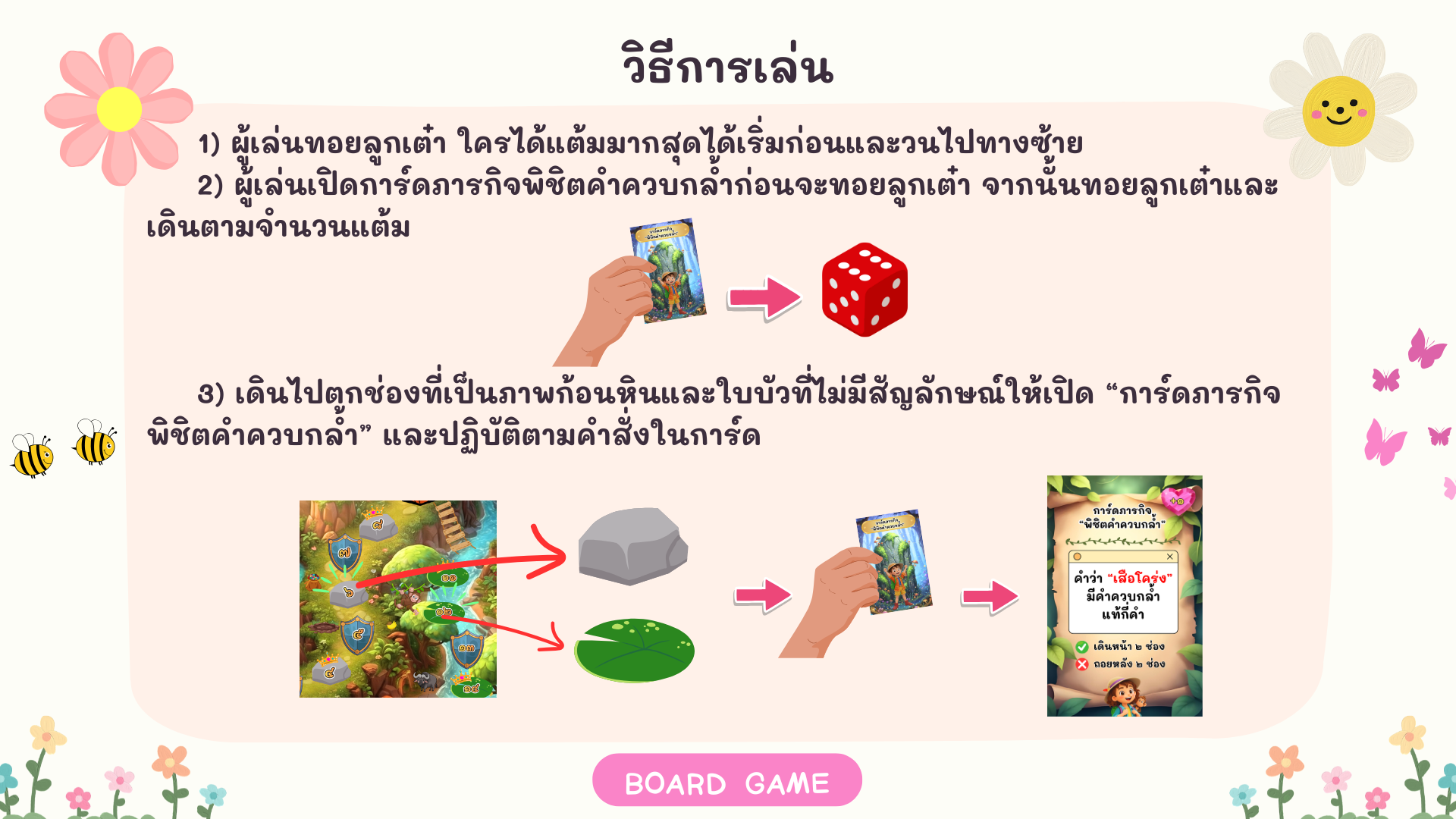 บอร์ดเกม "ผจญภัยในป่ามหัศจรรย์คำควบกล้ำ" นวัตกรรมที่เป็นมากกว่าความสนุก เพื่อทลายกำแพงเหล่านี้ บอร์ดเกม "ผจญภัยในป่ามหัศจรรย์คำควบกล้ำ" จึงถูกออกแบบมาเพื่อเป็นเครื่องมือช่วยชีวิตโดยเปลี่ยนจากความกลัวให้กลายเป็นความท้าทาย