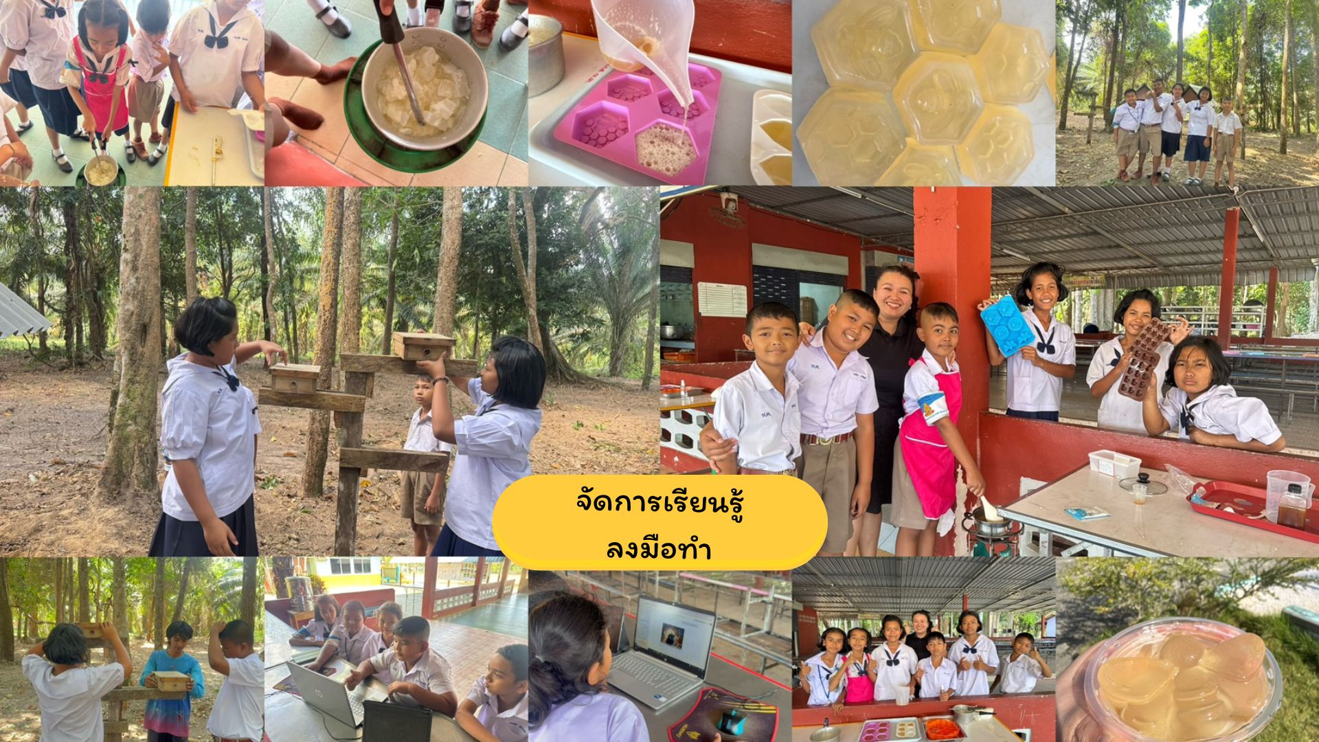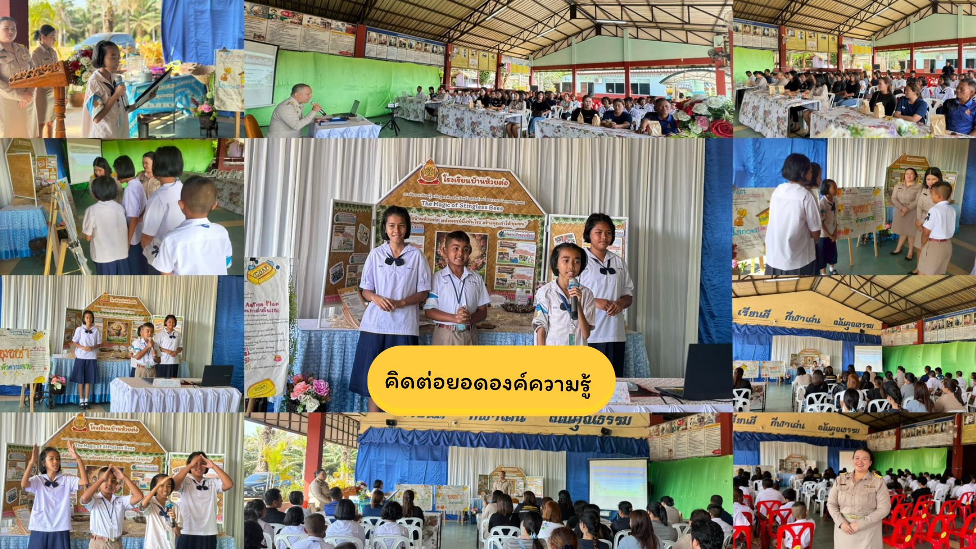 กิจกรรมต่อยอดขุมทรัพย์ สร้างคุณค่าสู่ชุมชน นักเรียนนำเสนอผลงานนวัตกรรมที่คิดค้นขึ้นให้คนในชุมชนได้รู้จักและเห็นคุณค่าของชันโรง และทดสอบหลังเรียนของนักเรียนรายบุคคล