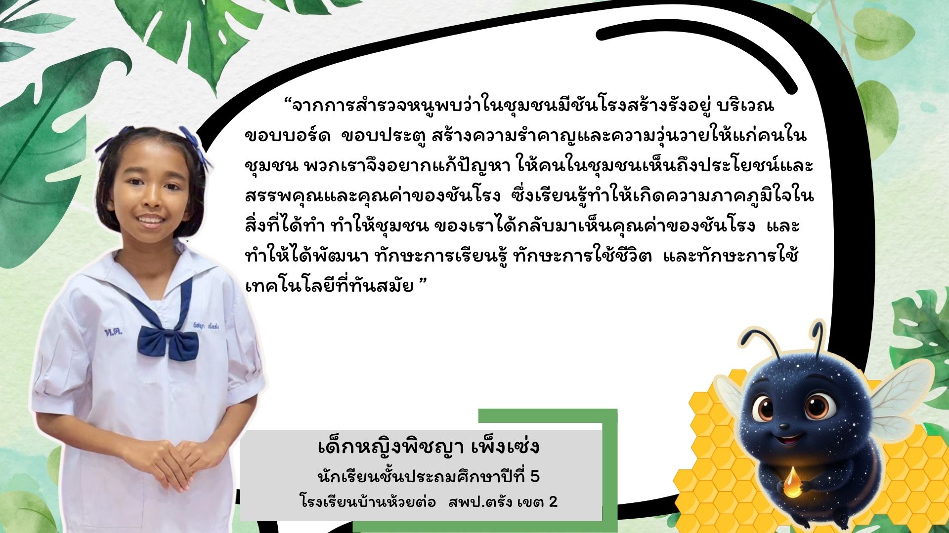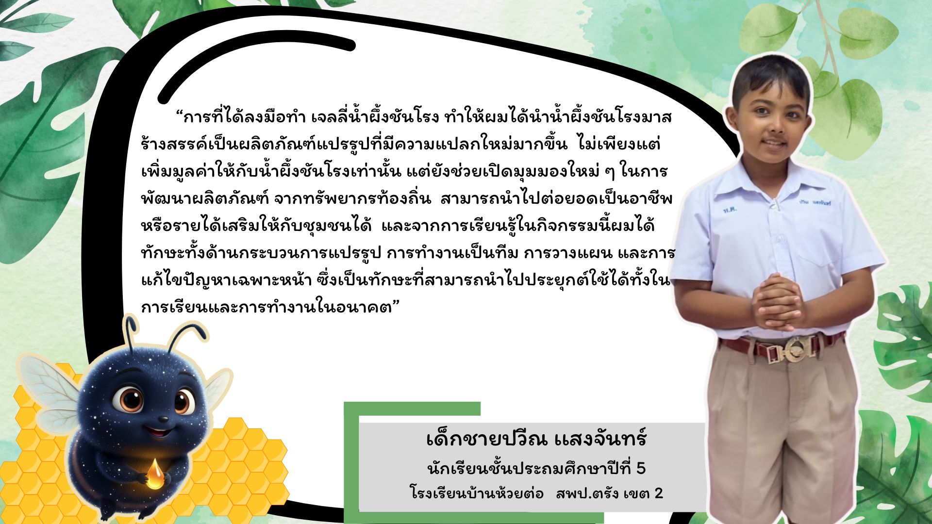 กลุ่มที่ 4 เด็กห้วยต่อ บอกต่อชันโรง สร้างนวัตกรรมสื่อประชาสัมพันธ์ชันโรง