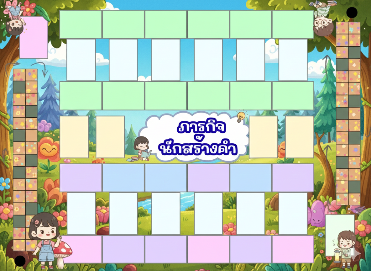3.3 ผู้เล่นช่วยกันวางการ์ดคำศัพท์ที่มีตัวการันต์บนกระดานบอร์ดเกม ทั้งหมด 16 ช่อง