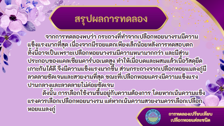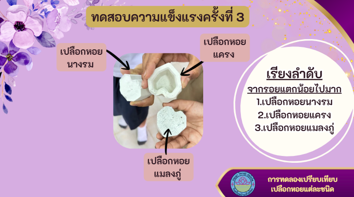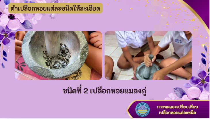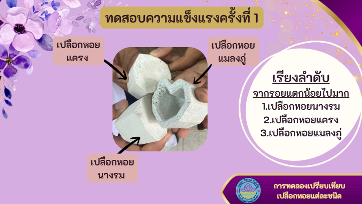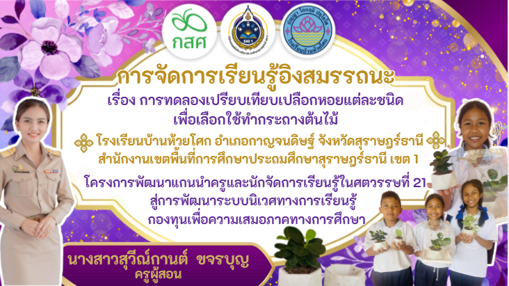 โครงการพัฒนาแกนนำครูและนักจัดการเรียนรู้ในศตวรรษที่ 21 สู่การพัฒนาระบบนิเวศทางการเรียนรู้ กองทุนเพื่อความเสมอภาคทางการศึกษา การจัดการเรียนรู้อิงสมรรถนะ เรื่อง การทดลองเปรียบเทียบเปลือกหอยแต่ละชนิด เพื่อเลือกใช้ทำกระถางต้นไม้